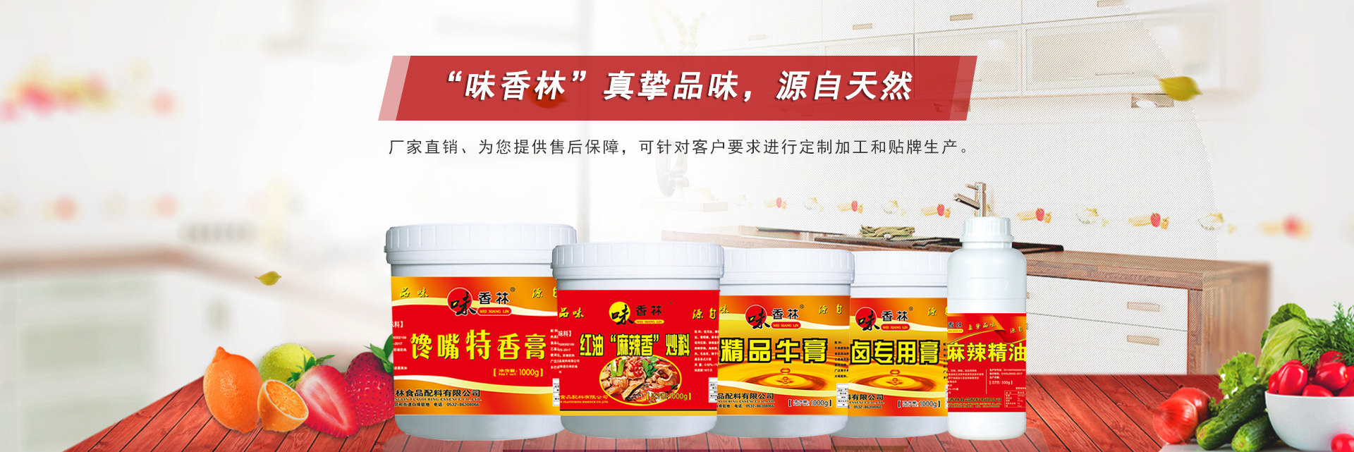 青島味香林復(fù)合調(diào)味料分為膏狀系列、粉狀系列、油狀系列三大分類,總共一百多種產(chǎn)品,可以根據(jù)客戶需求進(jìn)行定制口味;